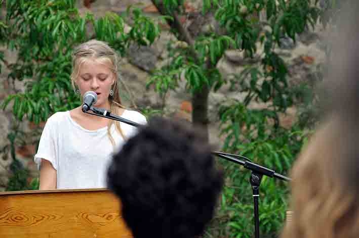 Dies sollte auf verschiedenen Wegen gelingen. So veranstalteten Kirsten Fuchs und Jan-Peter Bremer Wochen vor dem Festival Schreibworkshops mit Jugendlichen einer Schule in der Region. Die dabei entstandenen Texte stellten die Jugendlichen auf dem Festival selbst vor. Auch die Einbindung von Künstlern vor Ort war ein Rezept, das bei der Ansprache der lokalen Bevölkerung helfen sollte. Mit Pauline de Bok und Ines Baumgartl lasen zwei Autorinnen, die in der Uckermark leben. Die in ihrem Genre weltweit erfolgreiche Akkordeonistin Cathrin Pfeifer, die ebenfalls in der Gegend lebt, schloss am Sonntag des Festival mit einem Konzert. Der wichtigste Anker aber waren die Eröffnung des Sommerfests der Literatur und Musik im Atelierhof der Holzbildhauerin Wiebke Steinmetz im Zentrum von Fürstenwerder sowie eine von Dirk Laucke inszenierte Performanz mit Menschen aus dem Dorf unter dem Titel Schatz, ich habe die verlorene Zeit gefunden! Vor allem diese öffentliche Nabelschau der echten Dorfhistorie lockte viele Ortsansässige zum Auftaktabend des Stelldicheins der Berliner und Hamburger Literaturszene.